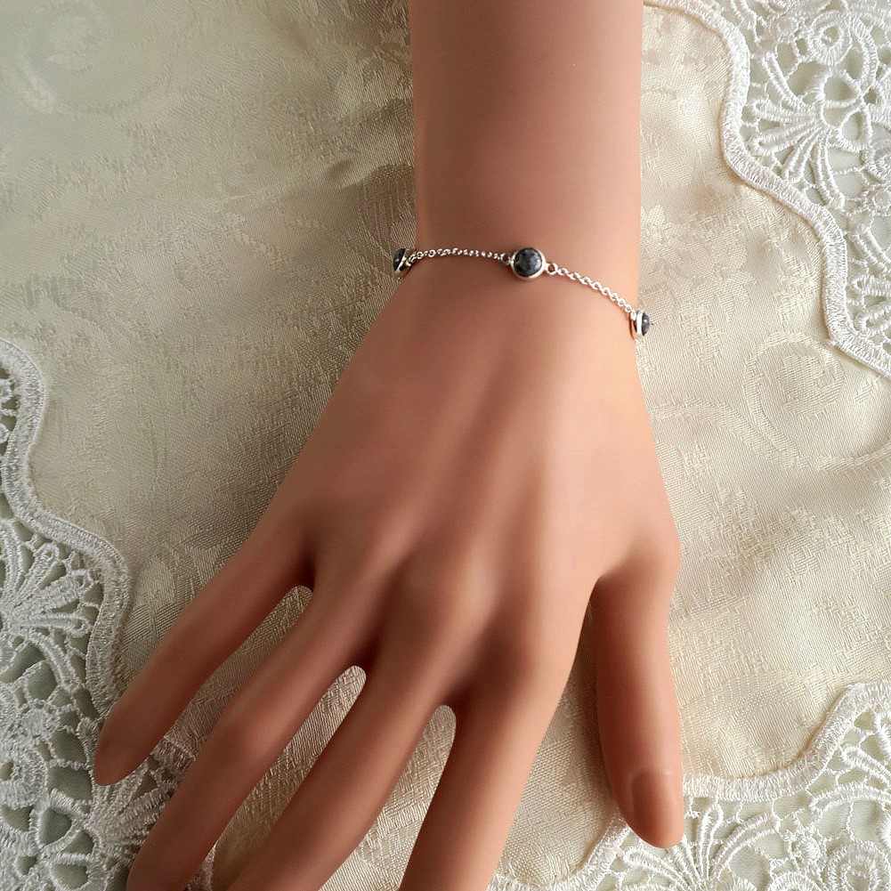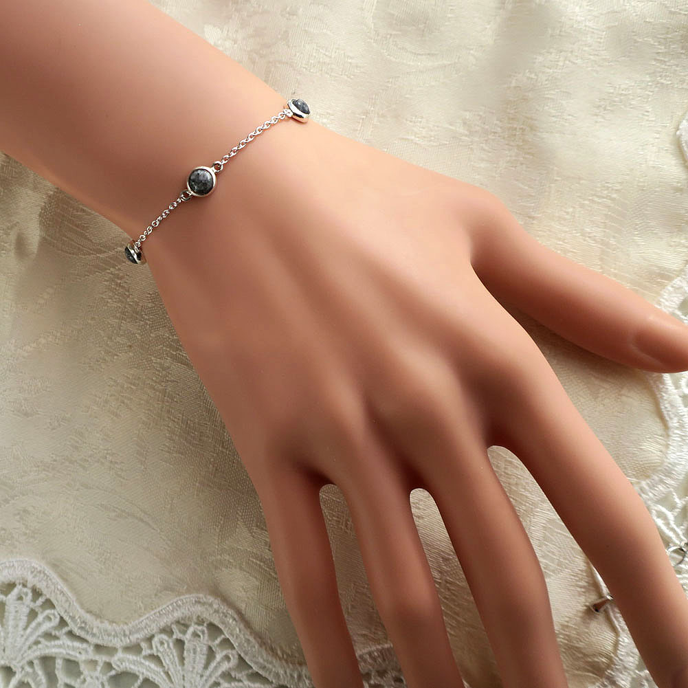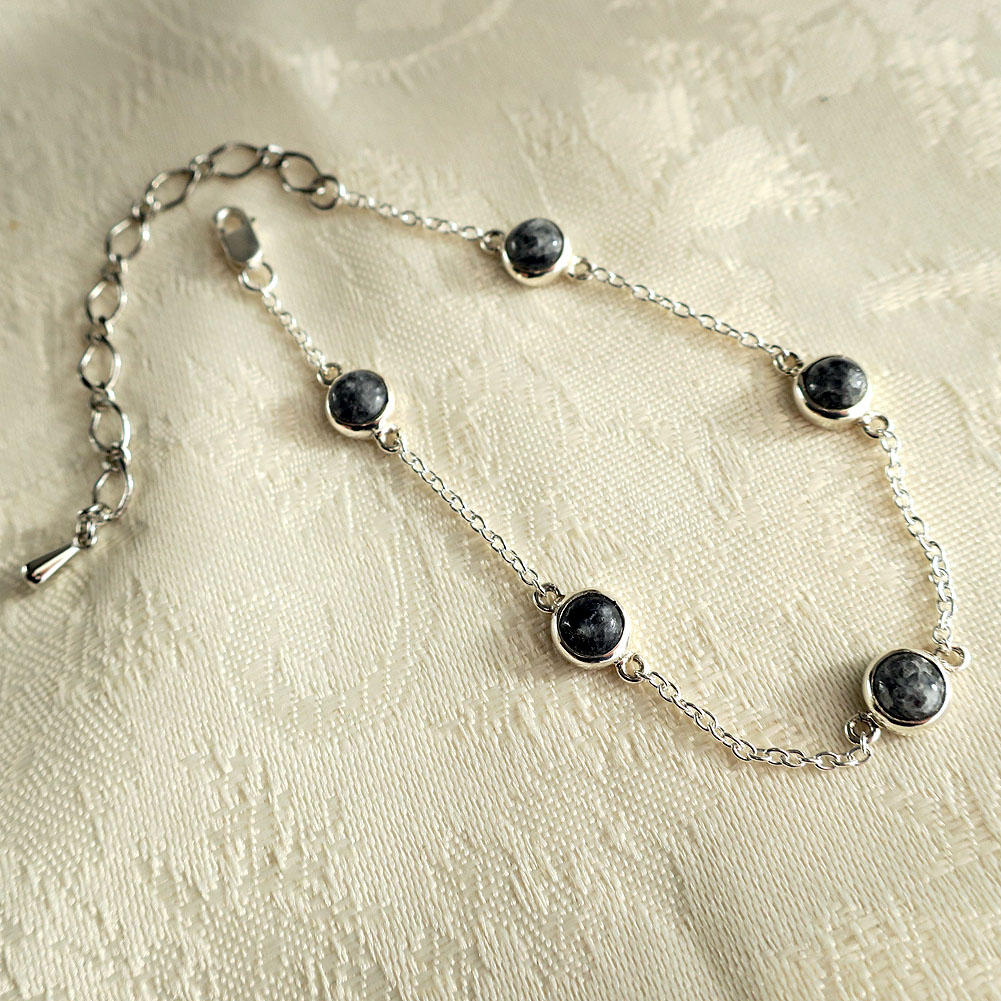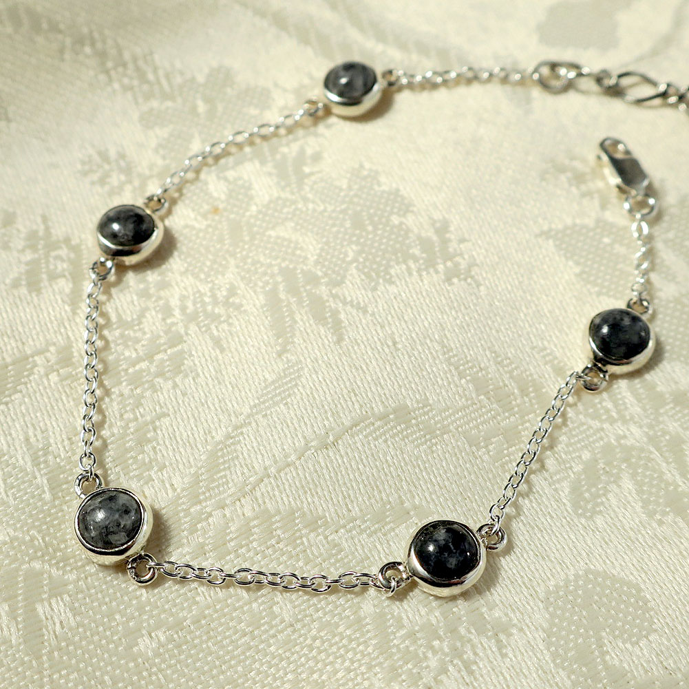 OSHOマーブルを磨いた小さなまる型ルースを繋いだ、シンプルなデザインのシルバーブレスレット。