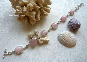 4月の誕生石 天然石モルガナイトと、小さなパールを繋いだシルバーブレスレット。上品で可愛いパワーストーンジュエリーです。
