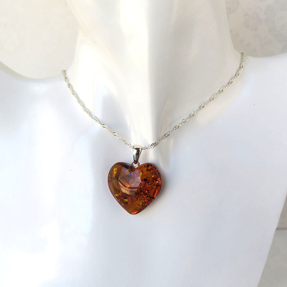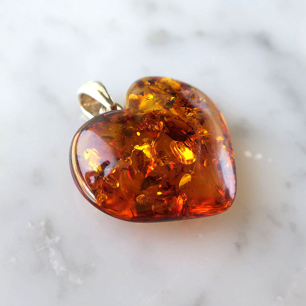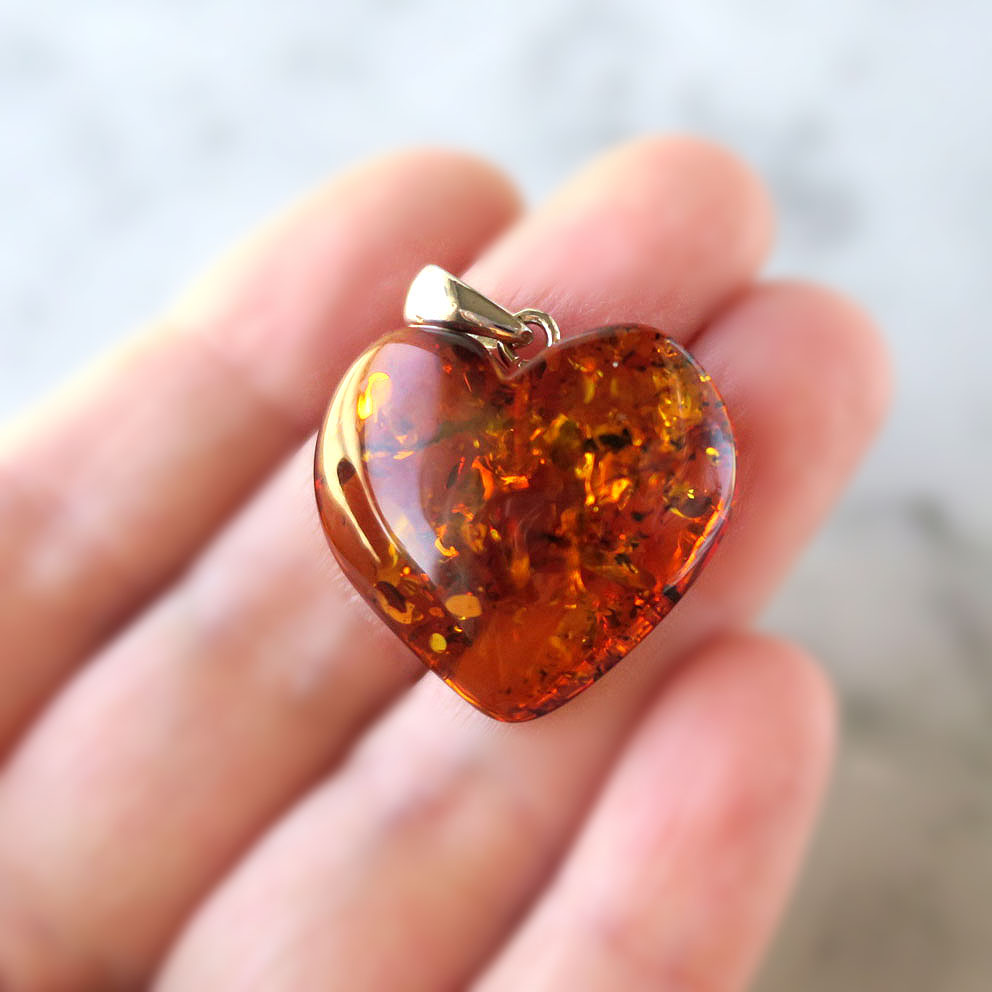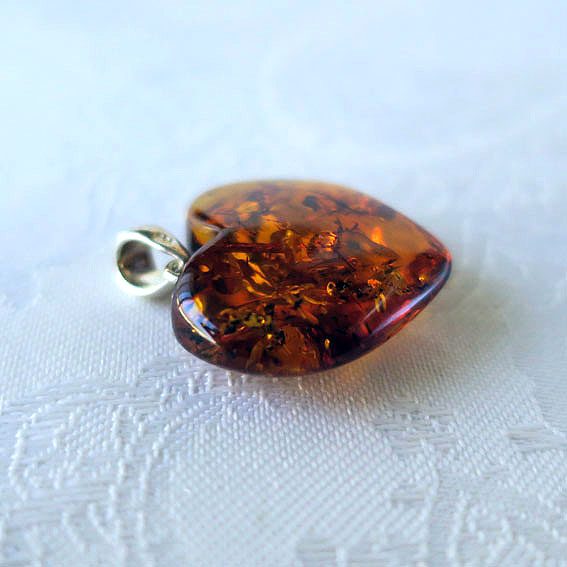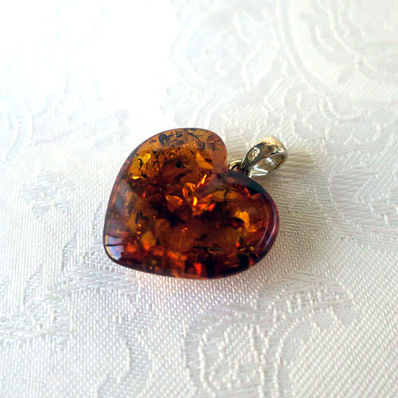 ハート型にカットして磨いた、かわいい秋色のリトアニア産アンバー(琥珀)のSV925ペンダントヘッドです。