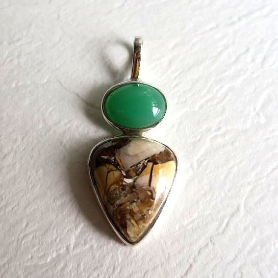 みずみずしいクリソプレーズとモッカイト(ム―カイト)の個性的なペンダントです。