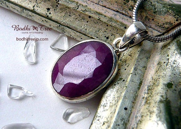 濃厚なルビーレッドのインドルビー・ファセットカット・オーバルルースを用いた、シンプルなペンダント。男女兼用です。7月誕生石のルビーは、内に秘めた情熱を象徴する赤色が特徴的。