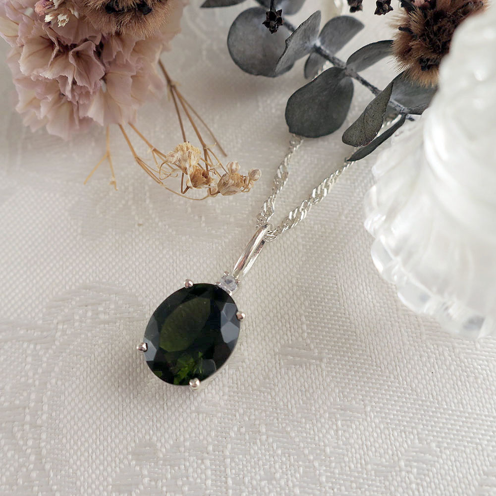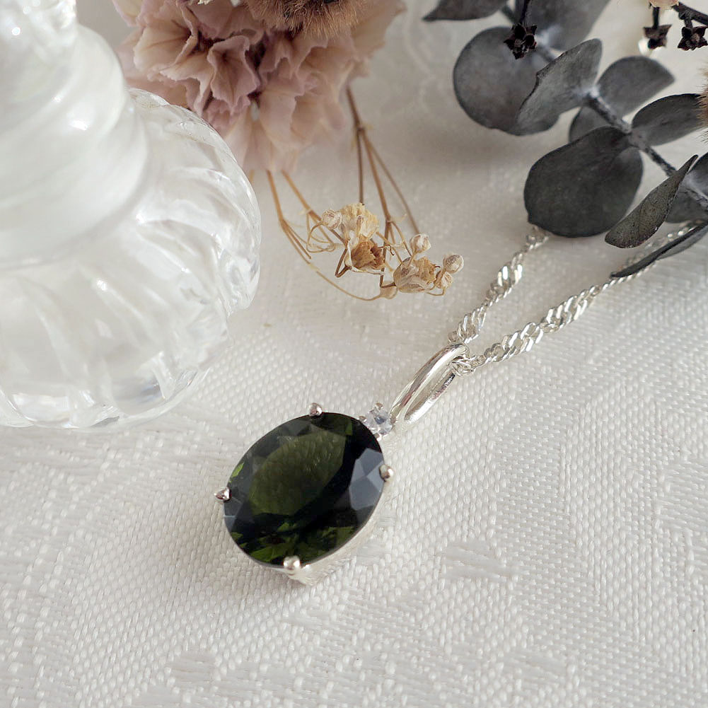 深い森のようなグリーンが印象的な天然ガラス「モルダバイト(Moldavite)」は、隕石の衝突によって生まれた地球外起源の天然ガラスです。