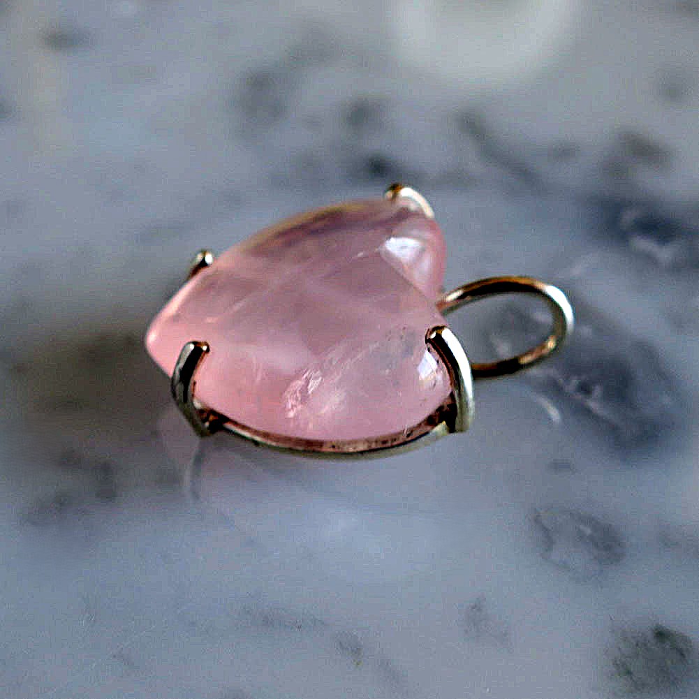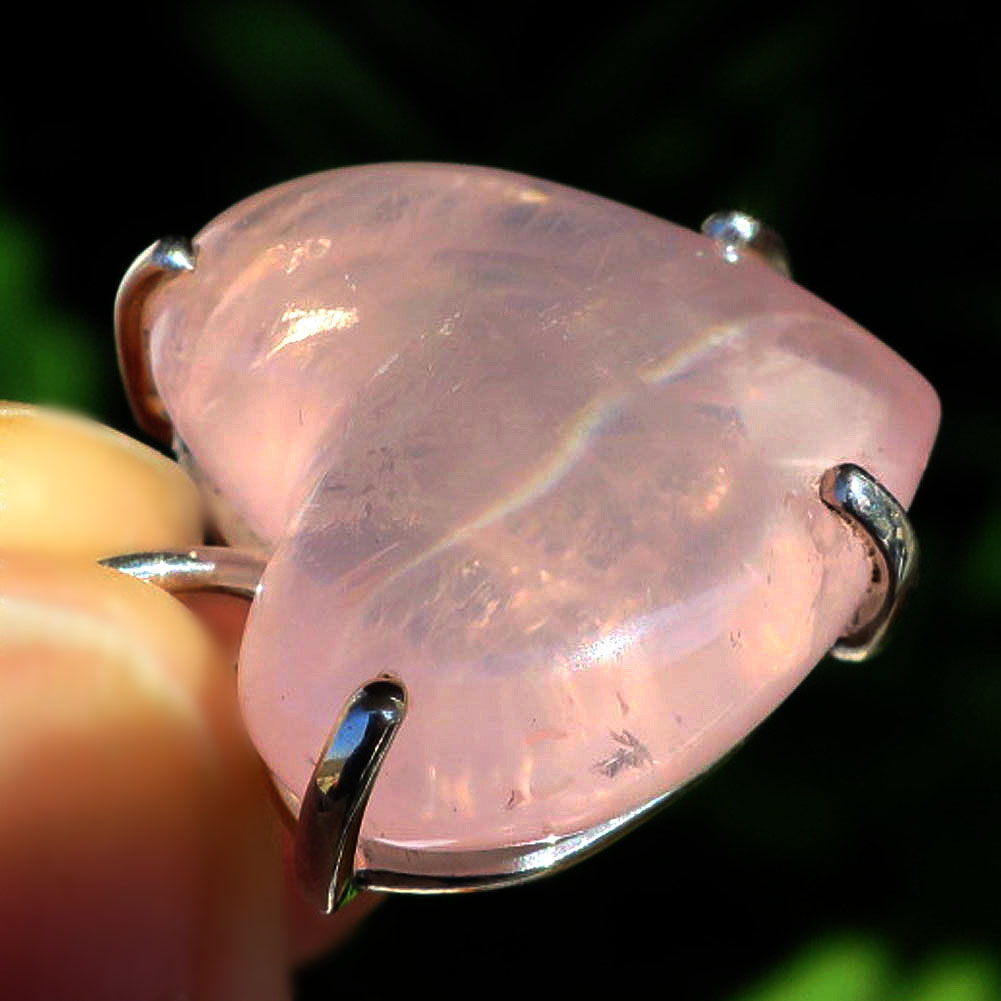 透明度の高いクリアなピンクの高品質ローズクォーツのバチカン一体型爪留めペンダントです。