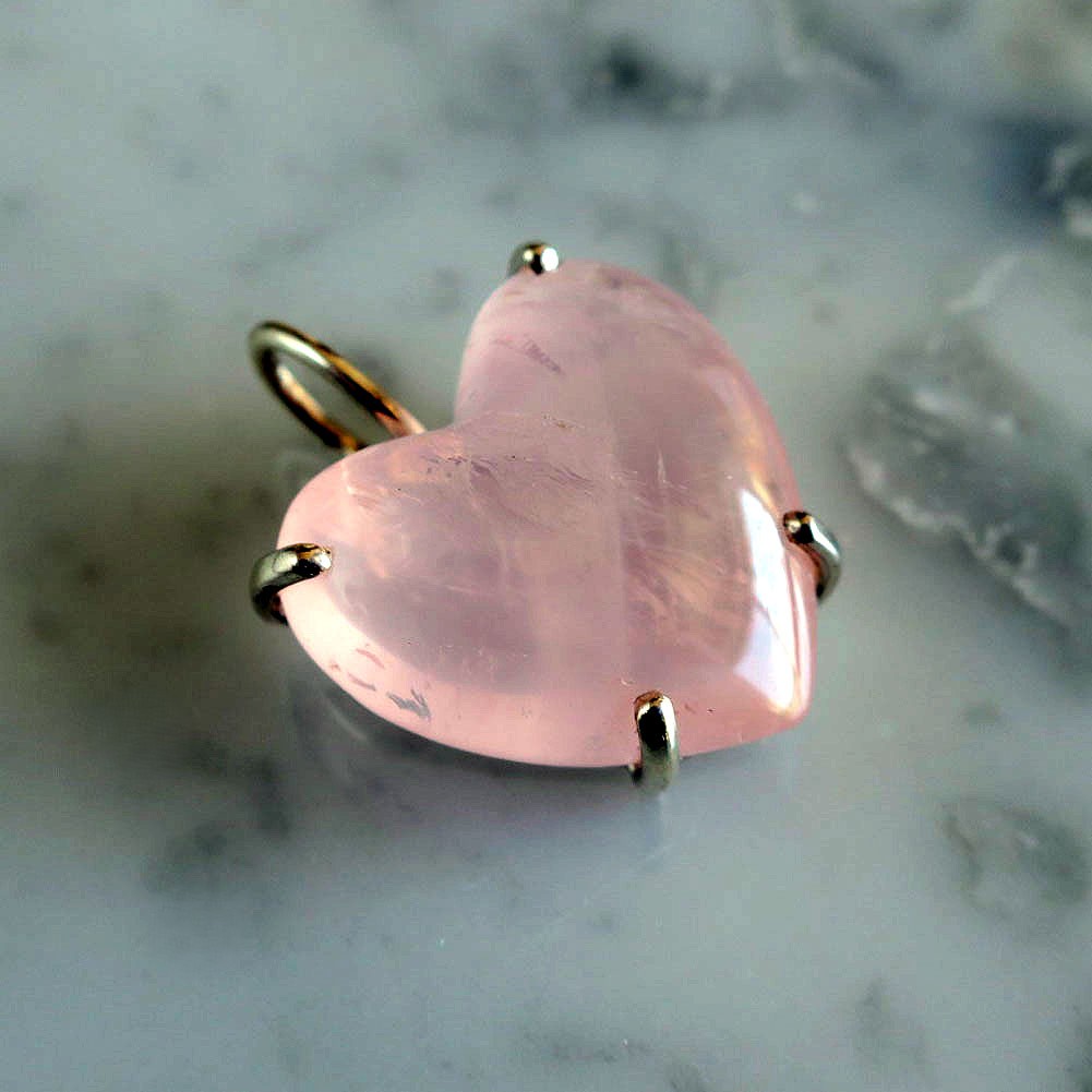 側面に光を当てると猫の目の様なキャッツアイが現れる、色も形もかわいいハート型の天然石ジュエリーです。