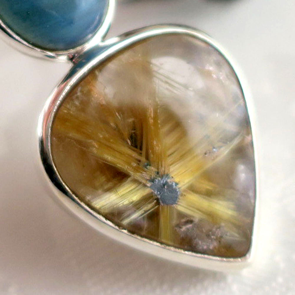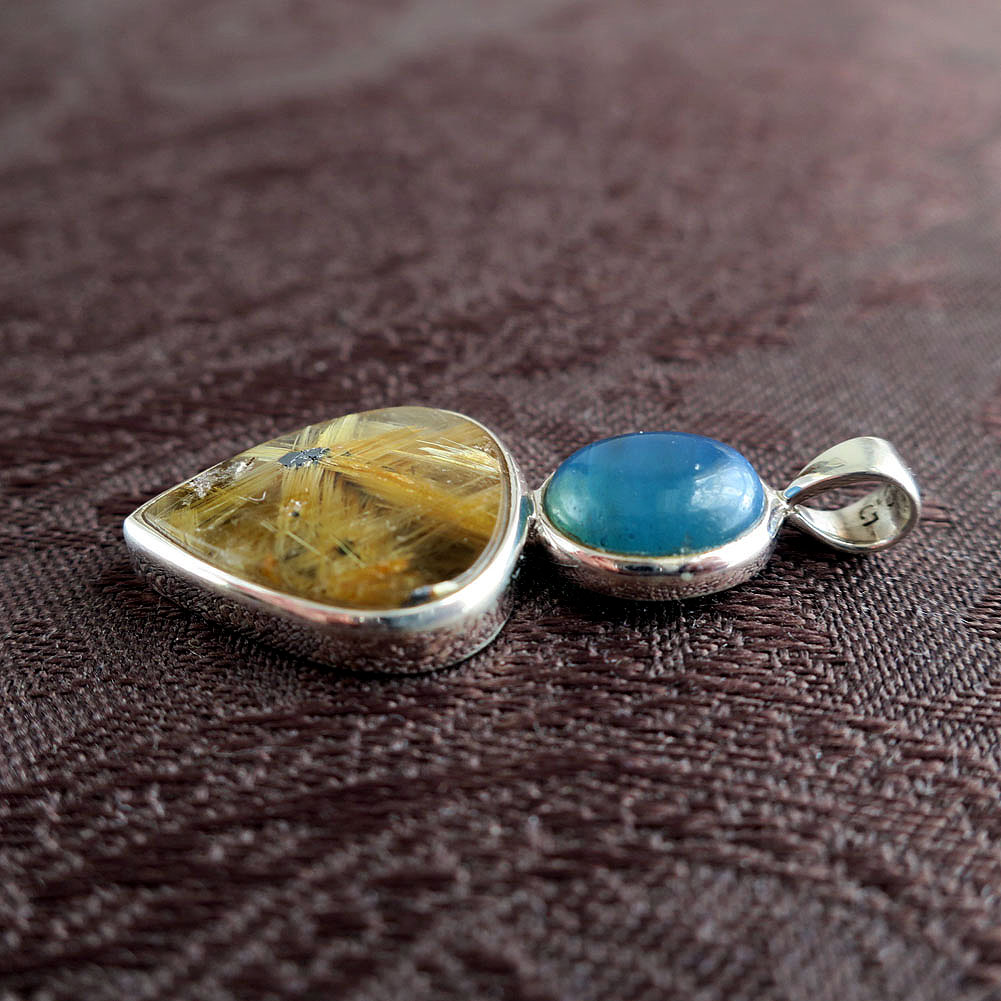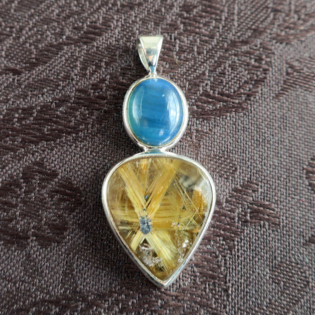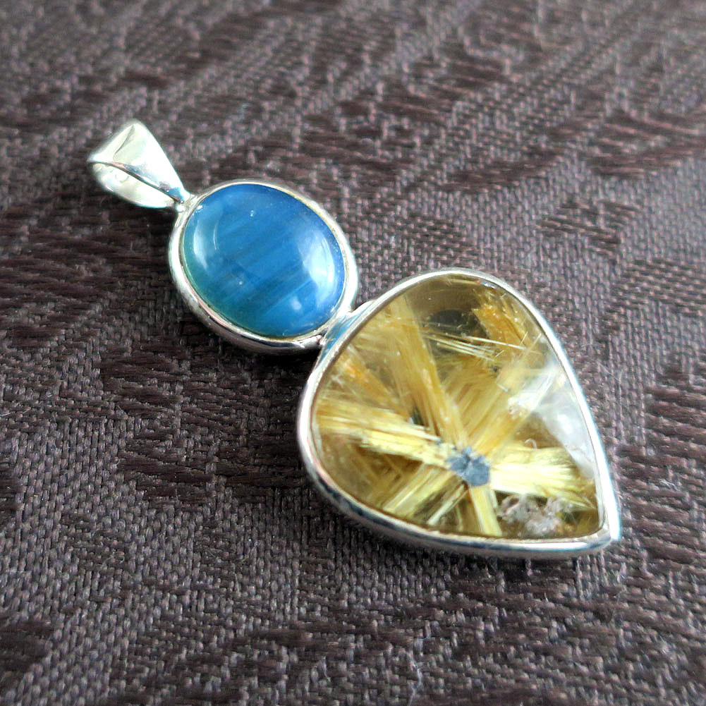 まるで太陽の様にゴージャスな、太陽(タイチン)ルチルとスウェディッシュブルーのユニークなコンビペンダント。