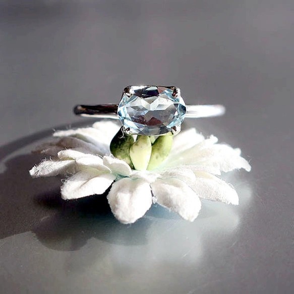 クリアなアクアマリンのファセットルースを、シンプルなリングに加工しました。