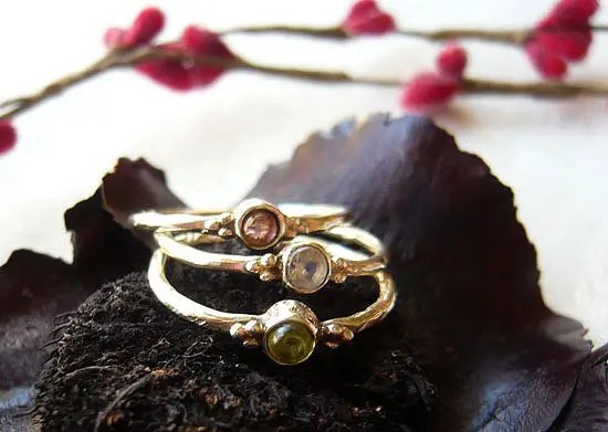 デザインの可愛い天然石リングを3つ合わせるた、シンプルな三連リング。