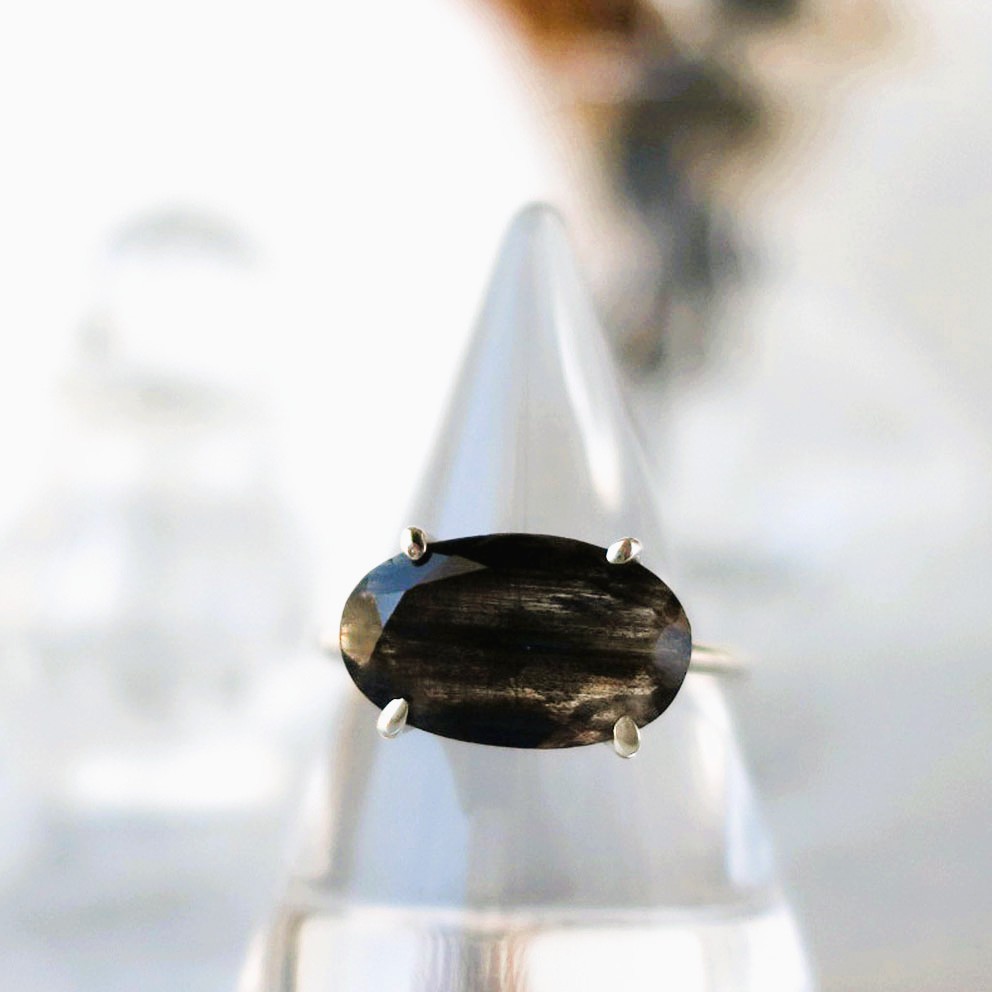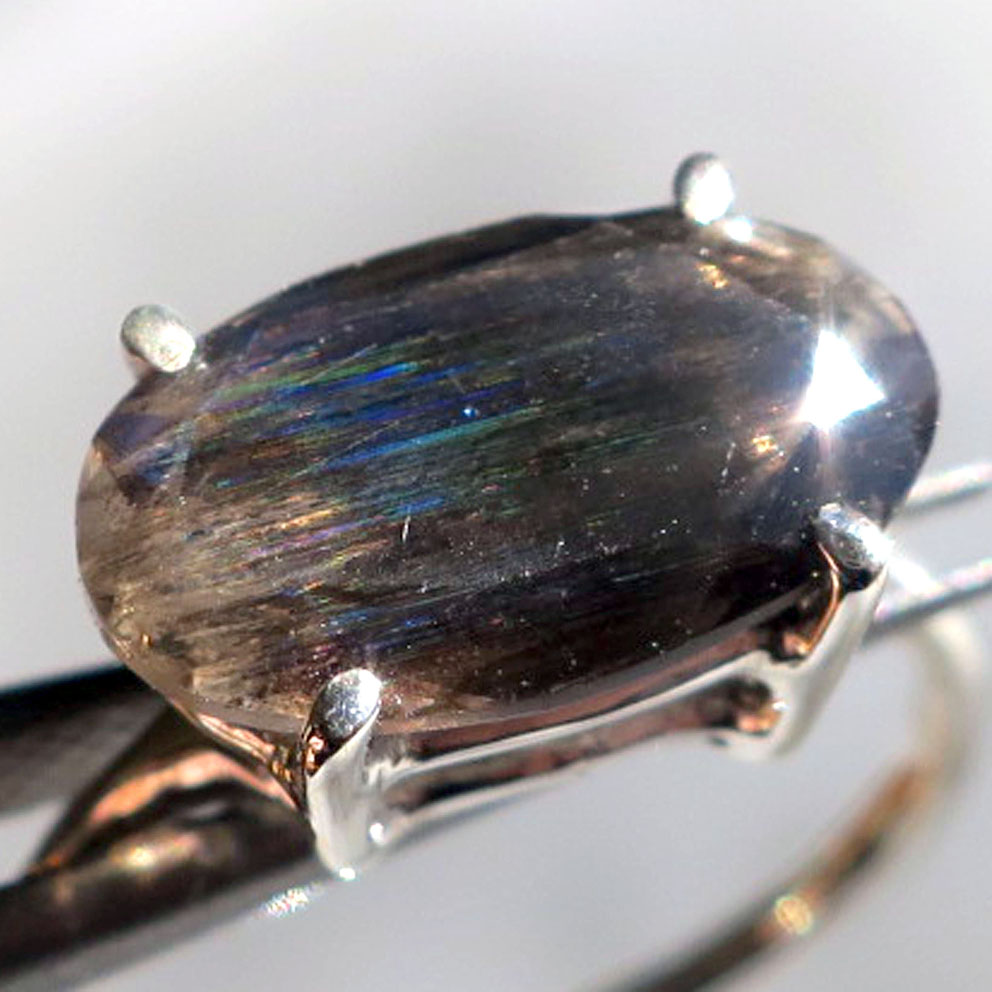 一見するとダークブラウンカラーの地味なクリスタルですが、光源の下ではレインボーのイリデッセンスが輝く不思議な天然石に変身します!