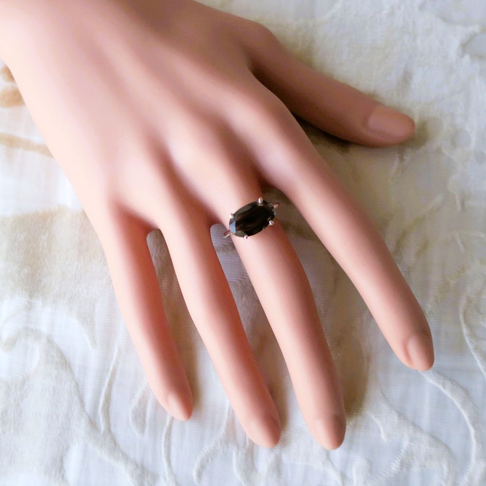 ブルーをメインとしたネオンカラーがとってもミステリアスなレアストーン、スキャポライト(スカポライト)の大きなカットオーバルルースを用いた、シンプルな爪留めのSV925リングです。