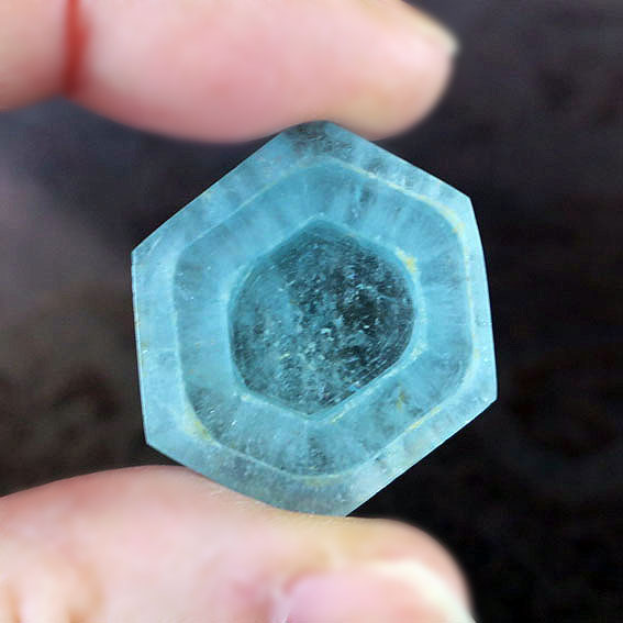 150万年前からの成長過程に於いて、度重なる環境変化により不純物が混じり、トラピッチェ模様とは別に、2~3層のレイヤーが重なった様なユニークな形状に成長しました。非常に珍しいトラピッチェアクアマリン原石鉱物です。