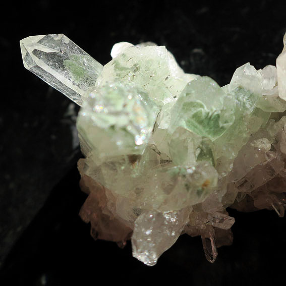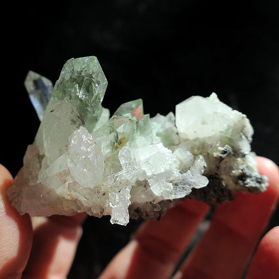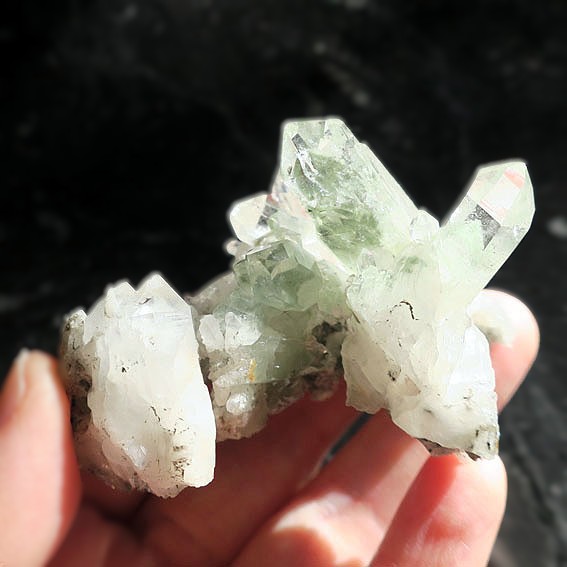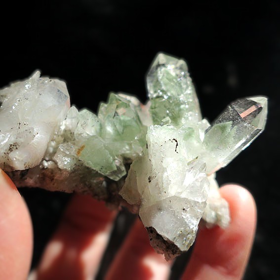透明度の高いポイントが特徴的。スイス・トゥージス産のグルーンファントムクォーツクラスターです。