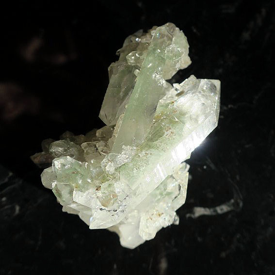 透明度の高いポイントが特徴的。スイス・トゥージス・ドムレスグ産のグルーンファントムクォーツクラスターです。