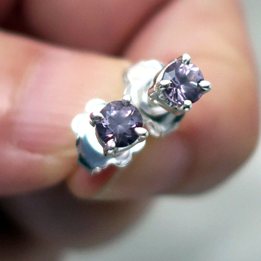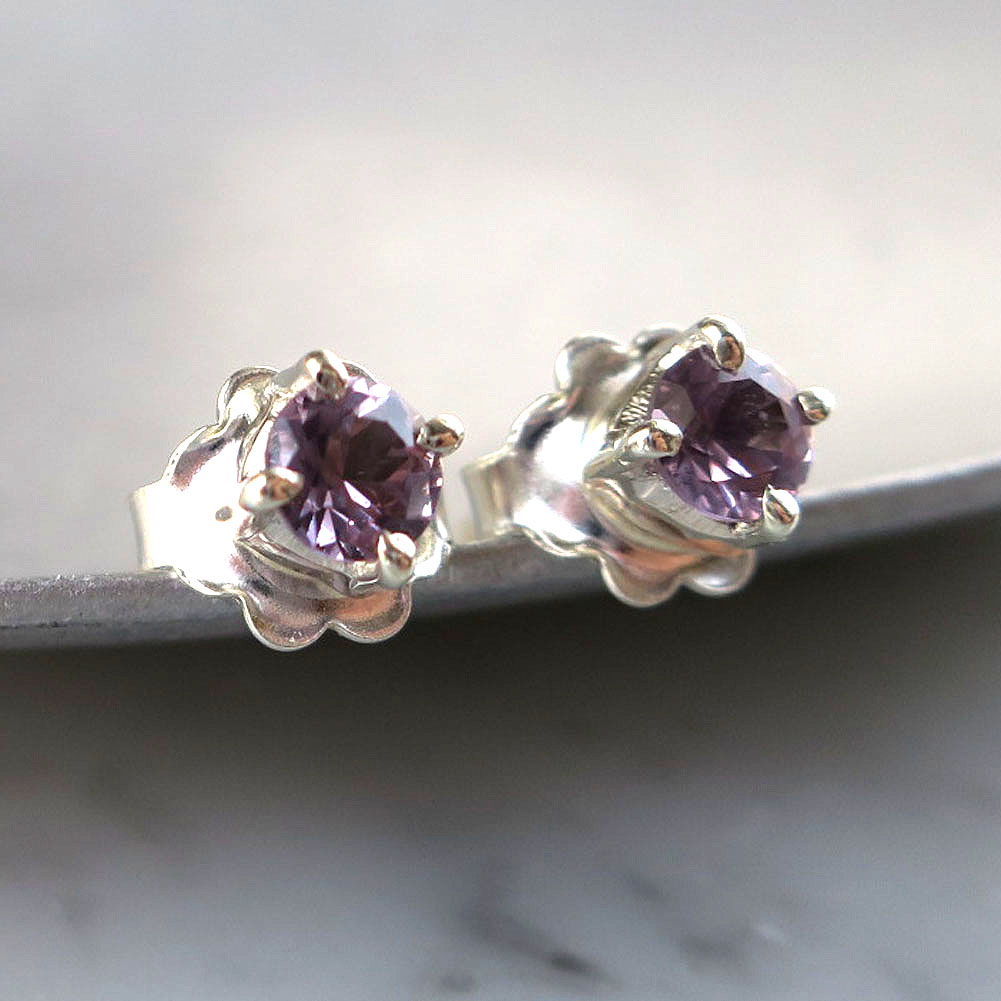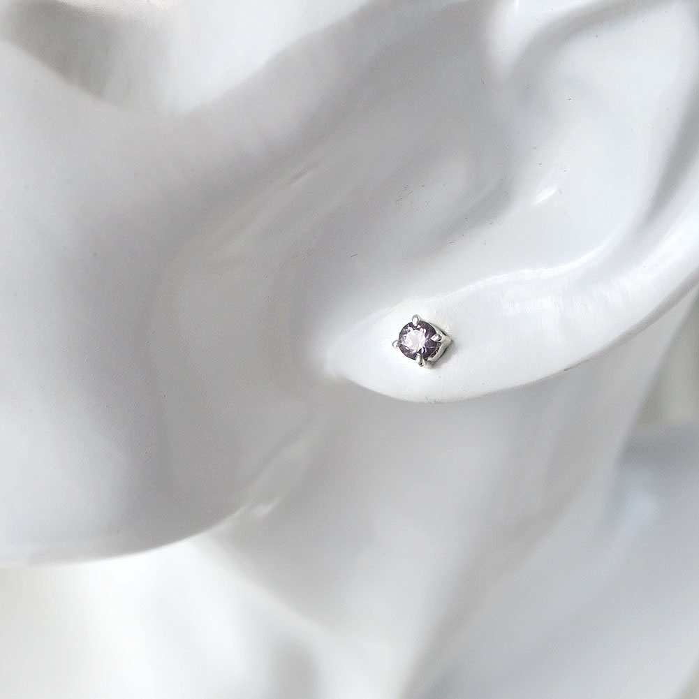 イギリスのフェアトレード業者から仕入れた、天然パープルスピネルを用いたシンプルなスタッドピアス。