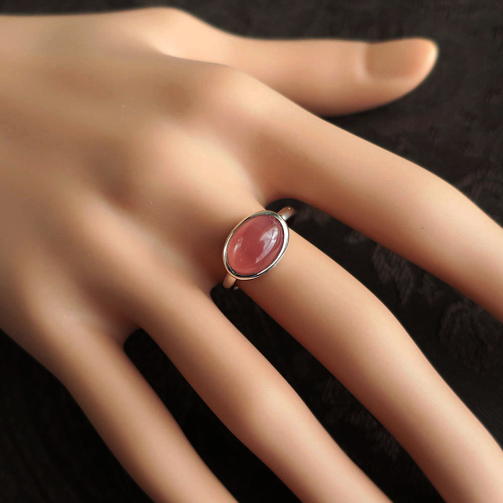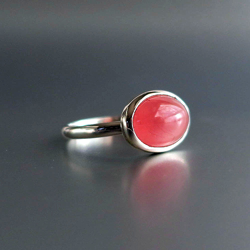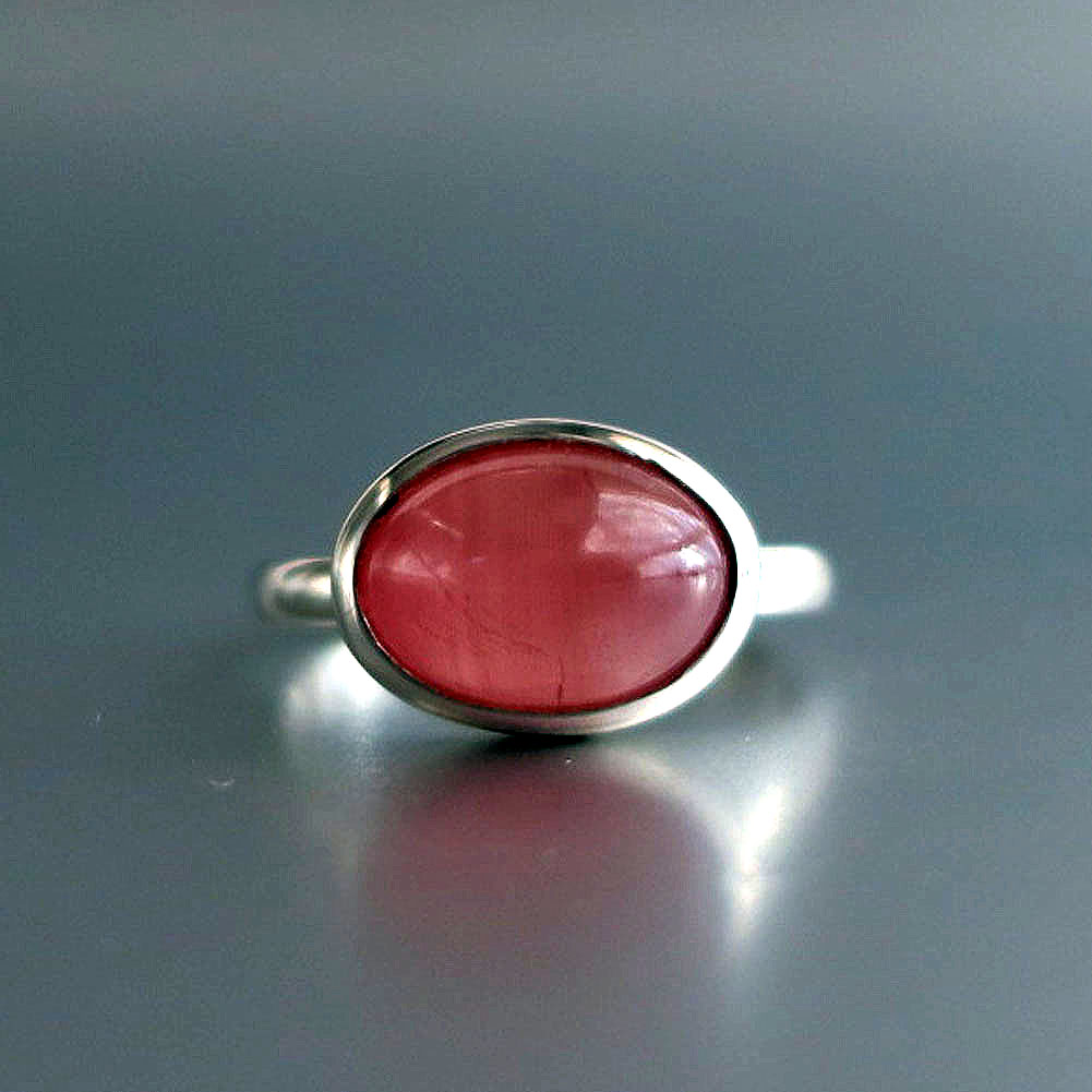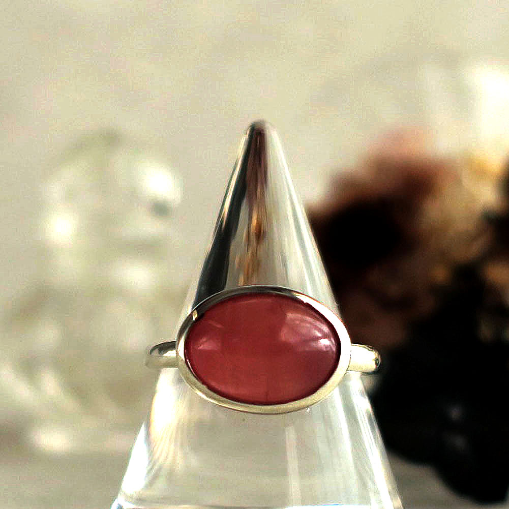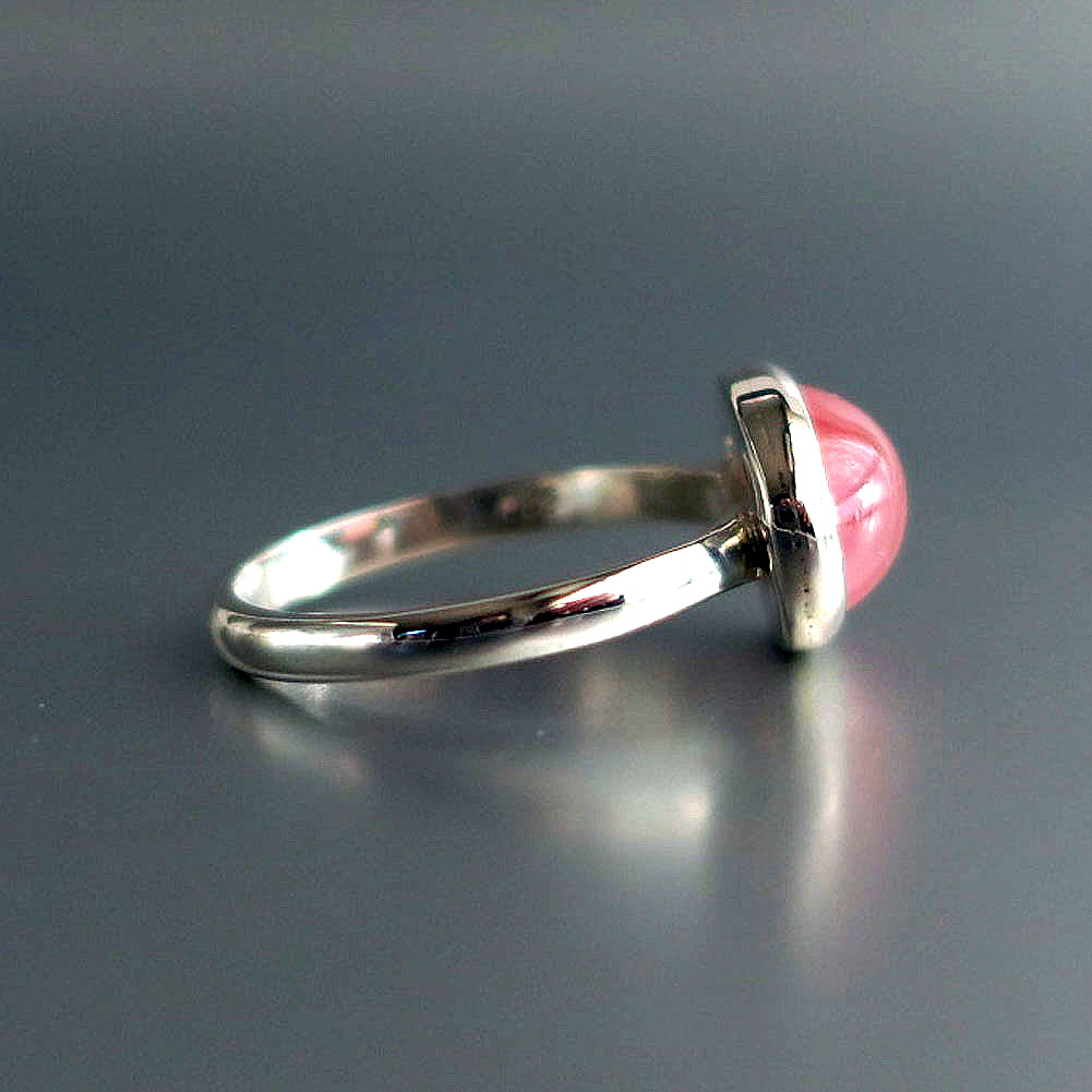 透明感のある春色ピンク♪希少な北海道産ロードクロサイトを使用したシルバーベゼルリング。