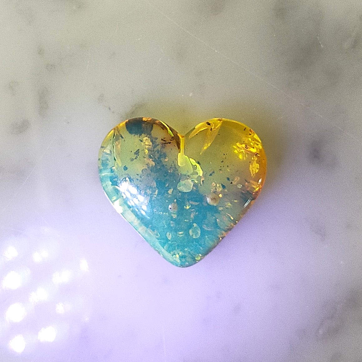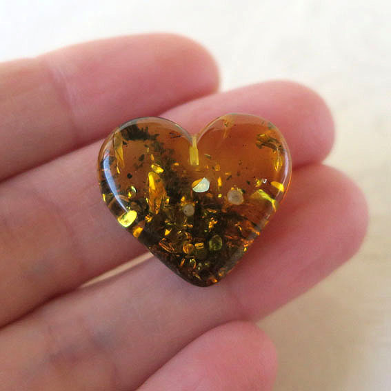 ハート型にカットして磨いた、かわいいリトアニア産アンバー(琥珀)です。