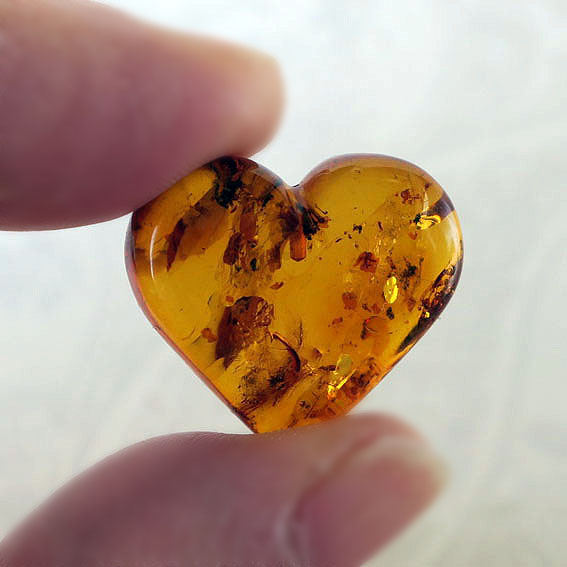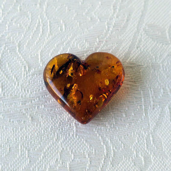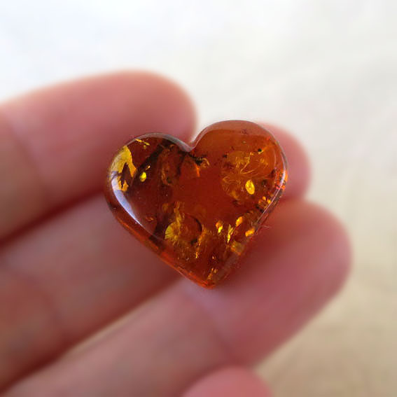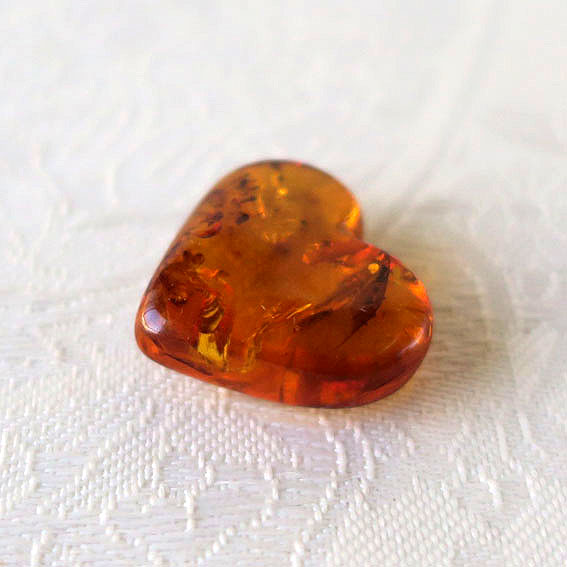 ハート型にカットして磨いた、かわいいリトアニア産アンバー(琥珀)です。