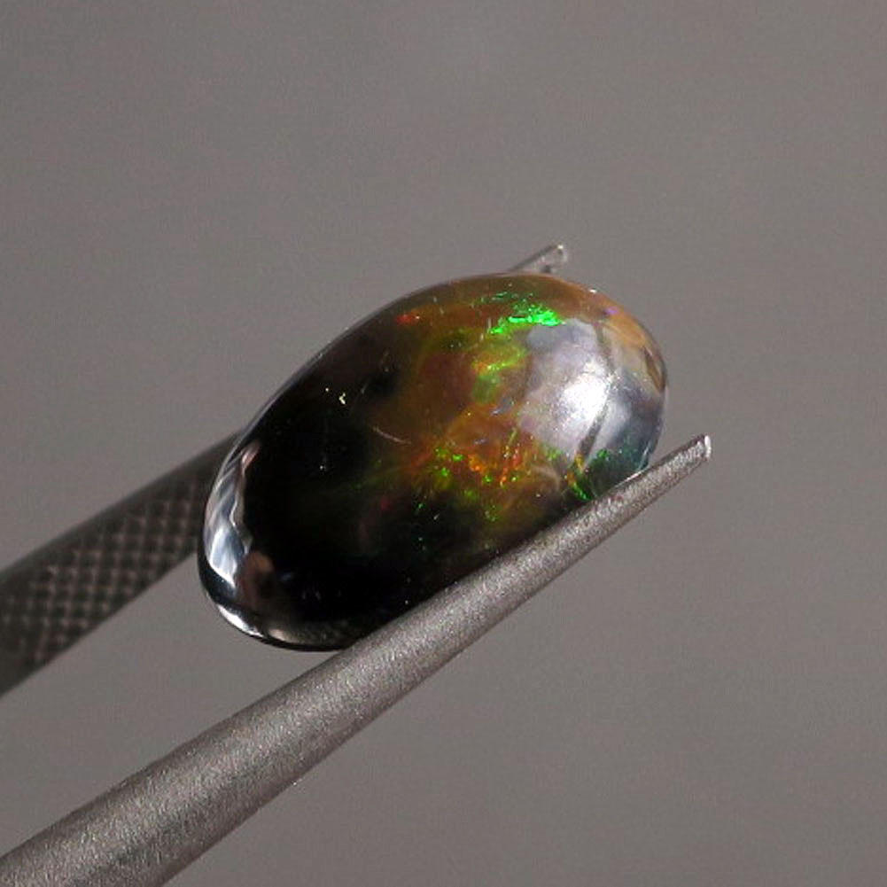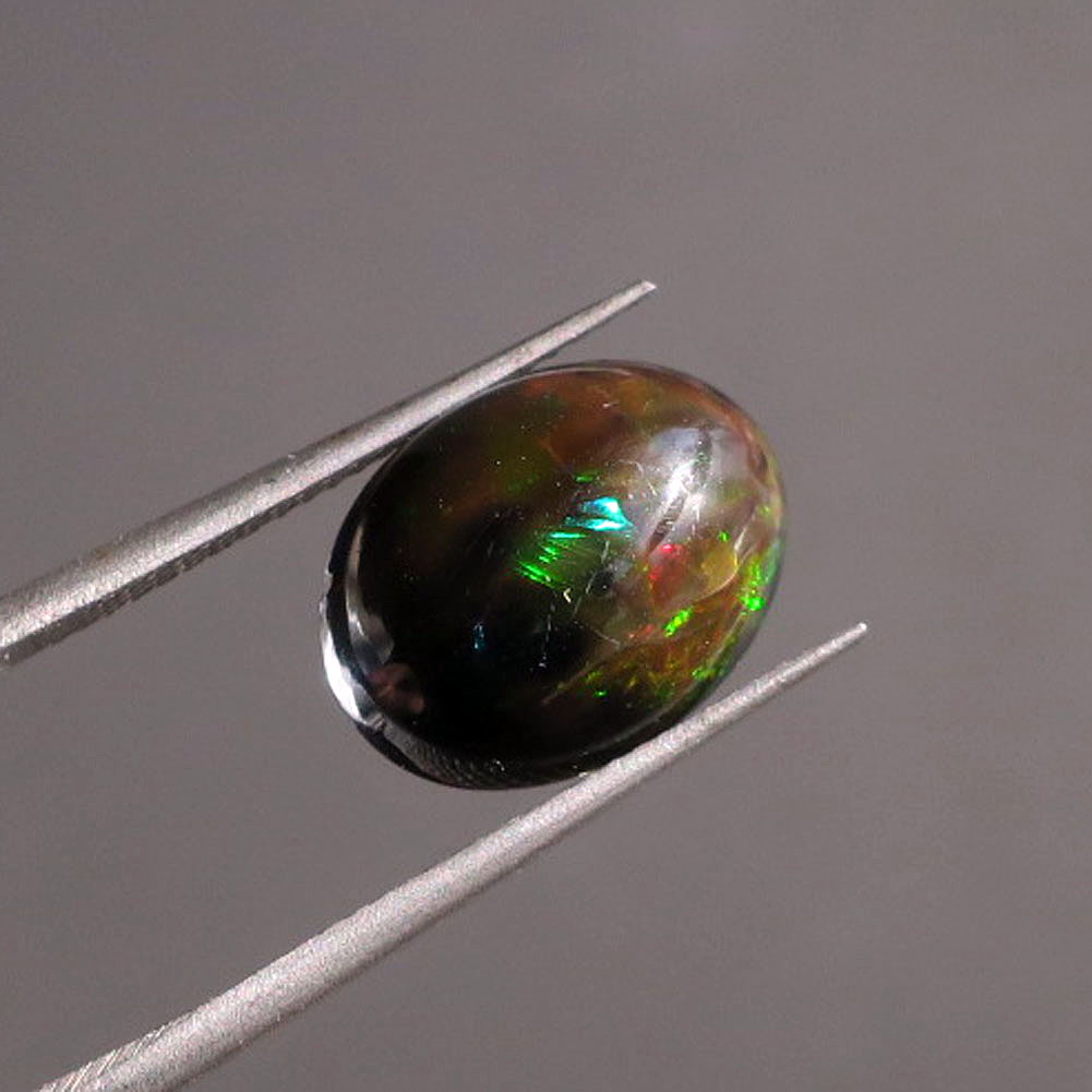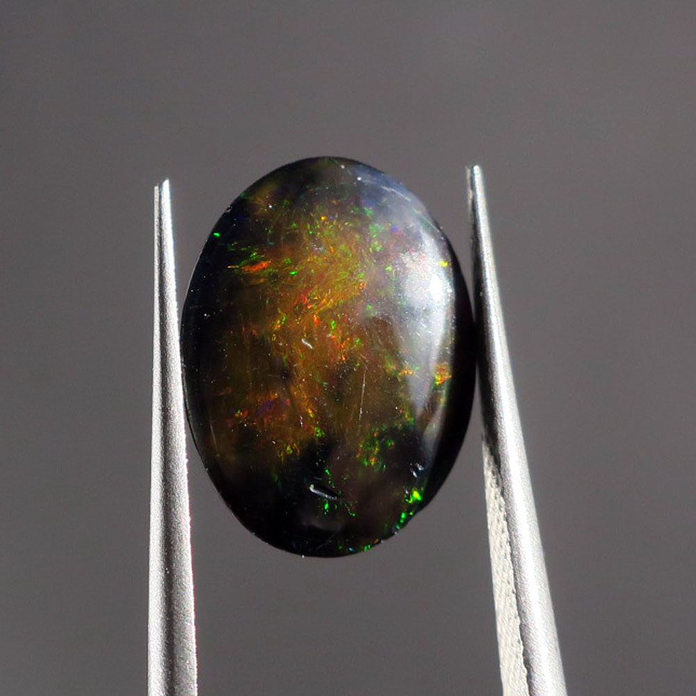 今月の新作 ダークブラウンのボディーにグリーン&レッドのファイヤーを伴ったオペークタイプのオパール。