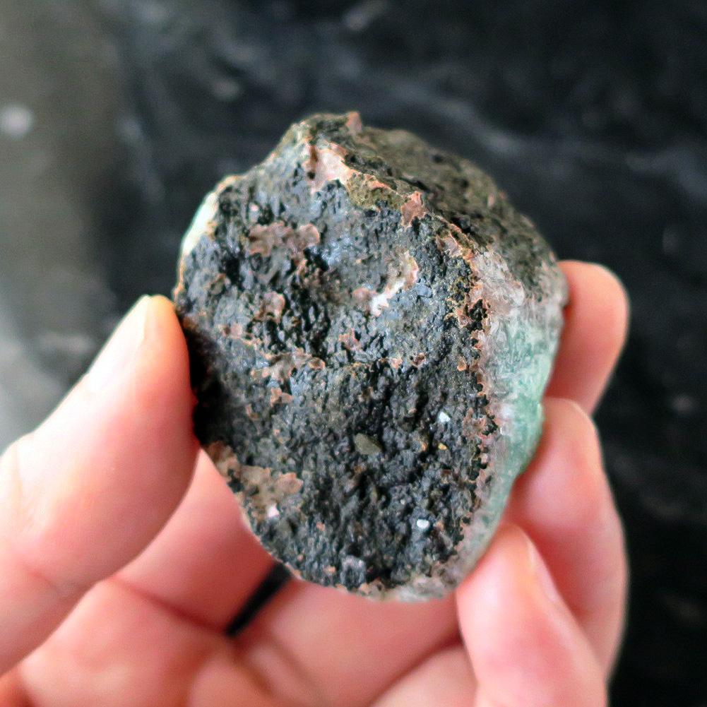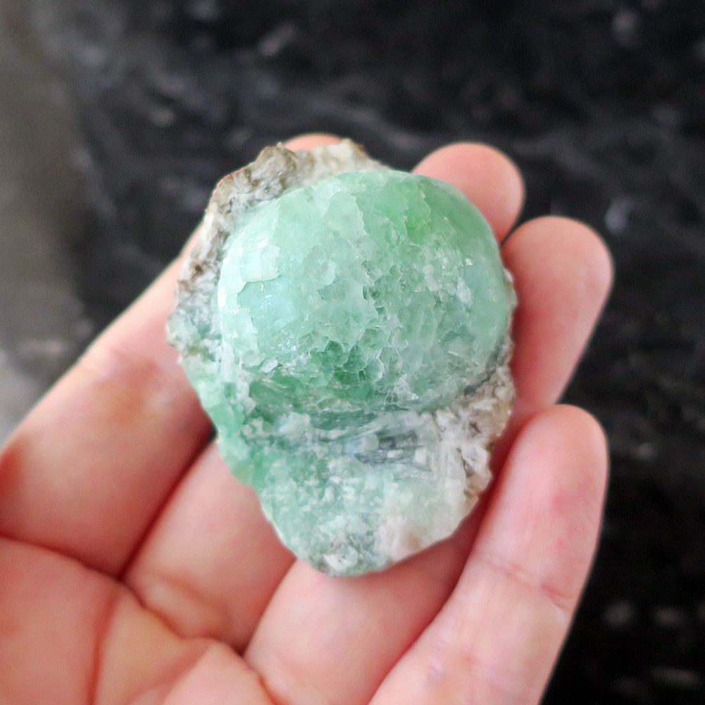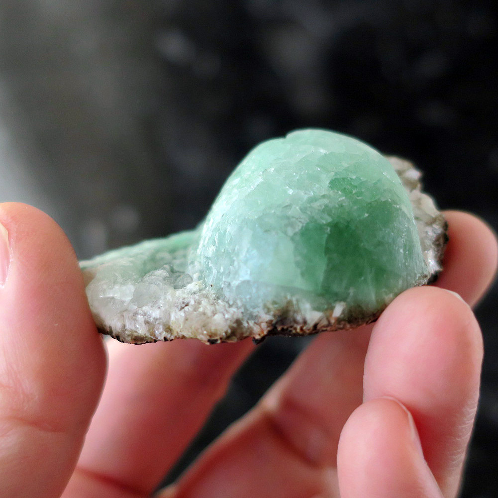 お色も濃く、大きなボール型のユニークなグリーンアポフィライト結晶原石。