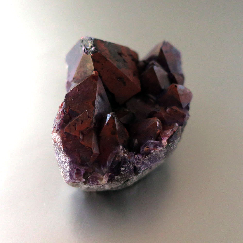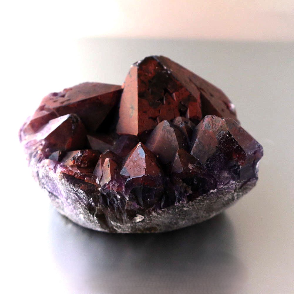 レッドファントムアメジストは、深い紫色、ドラゴンのハートの様なエレスチャル形状、宇宙を思わせる模様が特徴の、希少で魅惑的なアメジストの一種です。その神秘的な輝きは、まるで異星から来たかのような魅力を放っています。